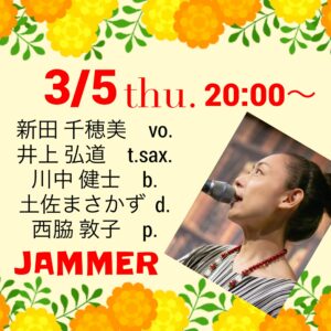 新田千穂美(Vo) 井上弘道(Tsax)川中健士(Wb)
